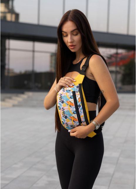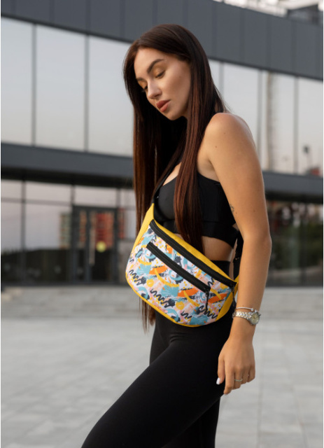 UA MarketКиївФОП Лісовий Р.М.ТовариСумки рюкзаки екошкіраБананкиВелика тканева сумка з екошкірою на пояс бананка Sambag Tirso Max жовта