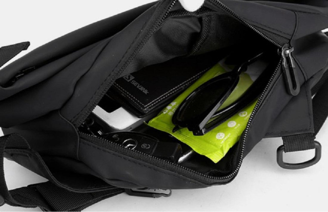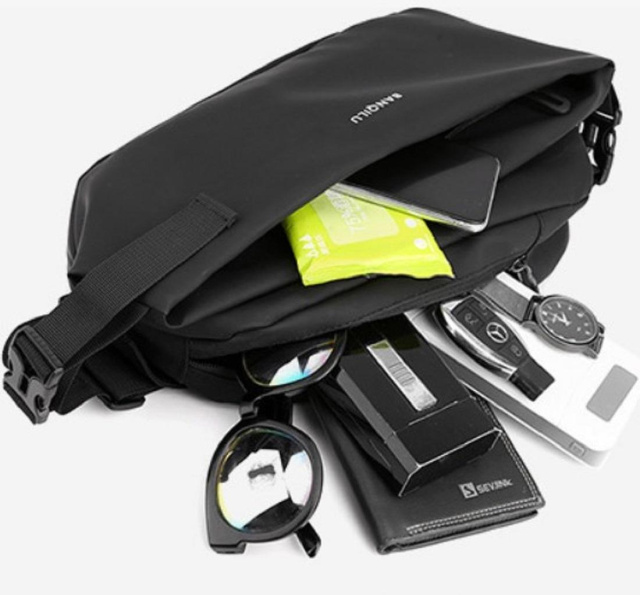 Наплічний текстильний ремінь відстібається за допомогою карабіна і регулюється по довжині, якщо це необхідно.