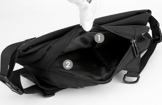 Має одне основне відділення на змійці з кишенею слотом відкритого типу всередині виробу. Крім основного відділу в сумці є три додаткові кишеньки з вертикальним закриттям на блискавках - з лицьової, задньої та тильної сторін.