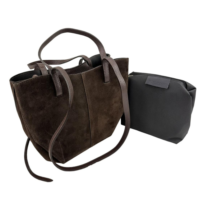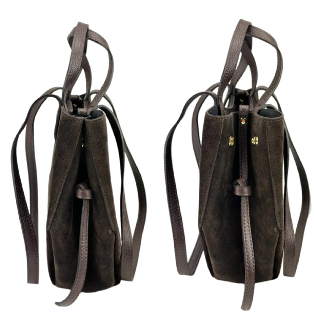 В сумці шкіряні короткі ручка й довгі, для зручного носіння на плечі.