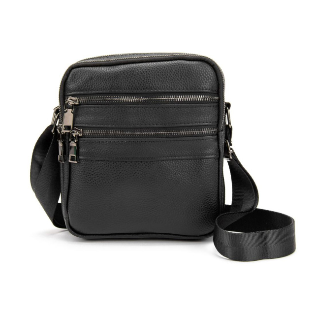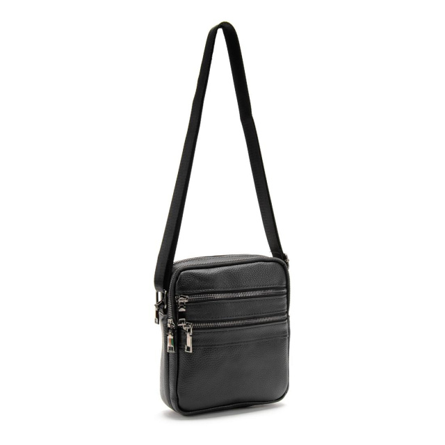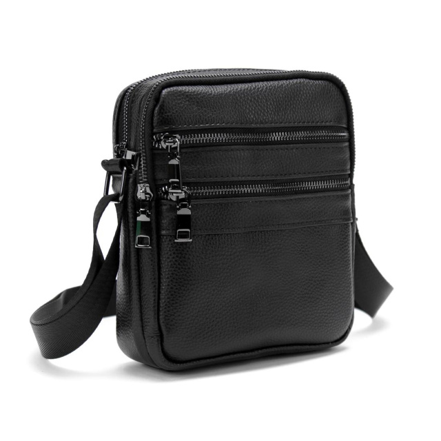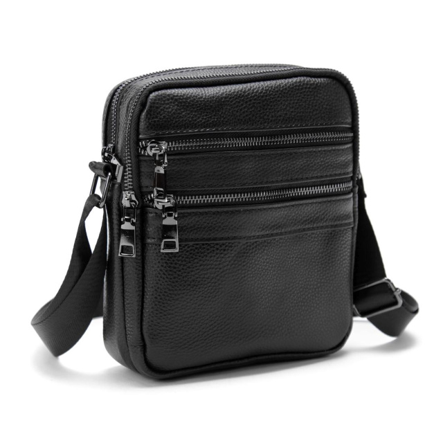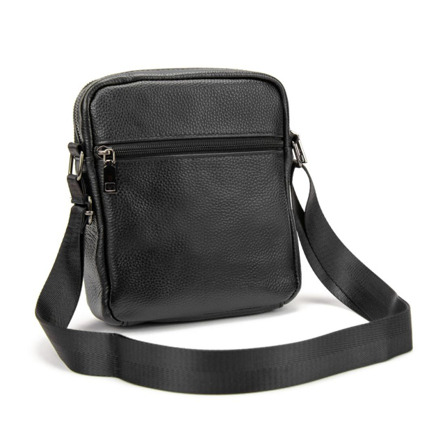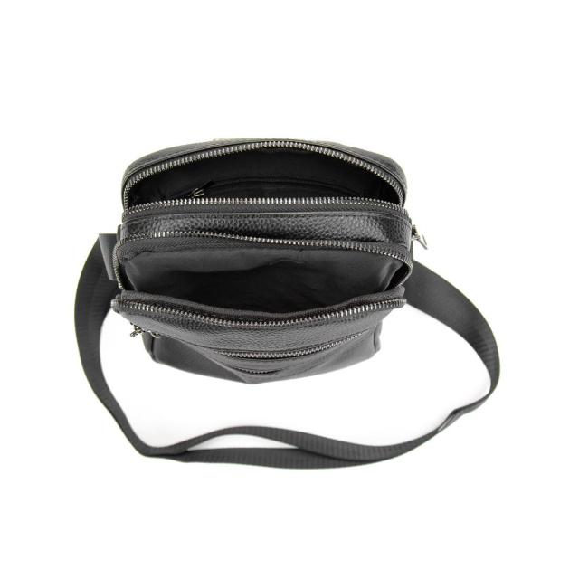 Сумка через плече 73646A з натуральної шкіри в чорному кольорі, зернистої фактури.