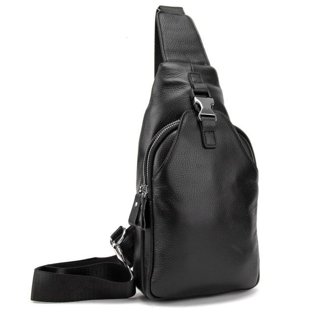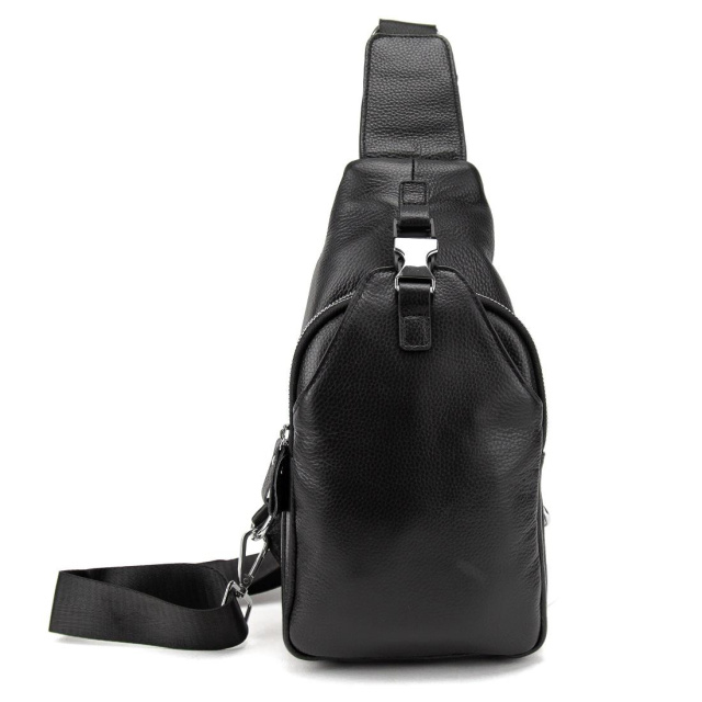 Чоловіча шкіряна сумка слінг чорного кольору.