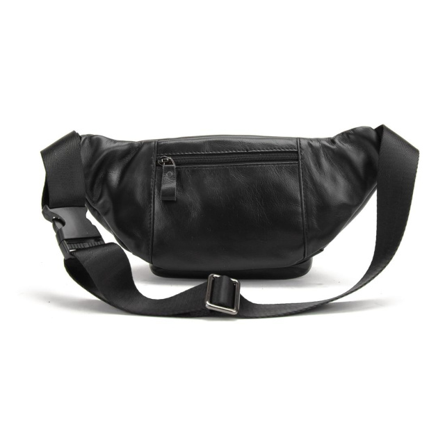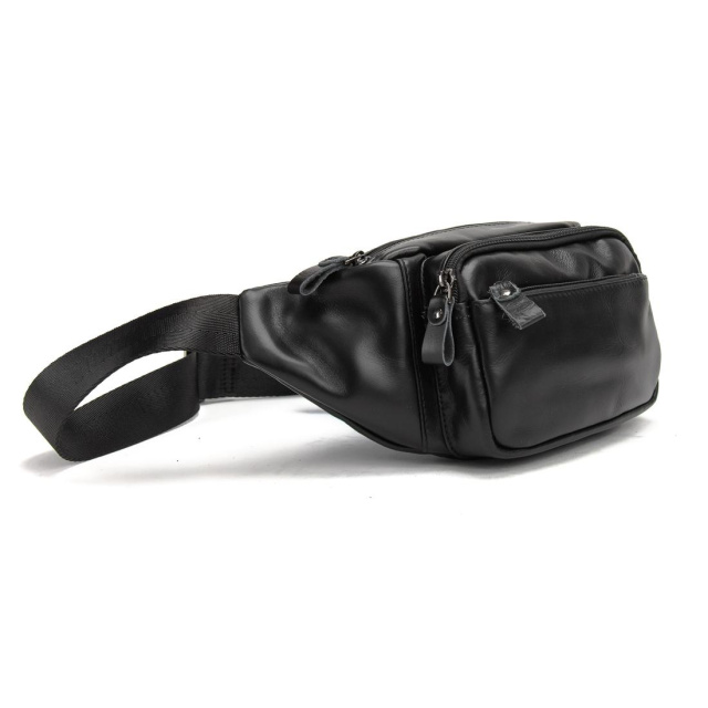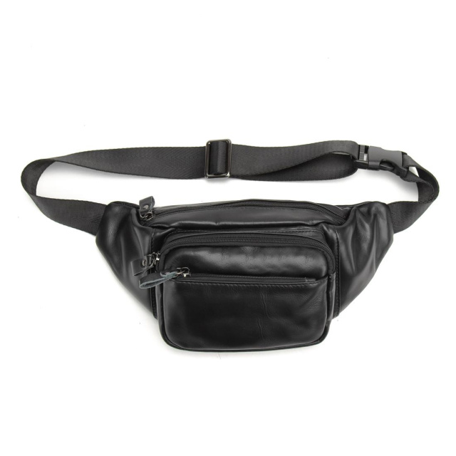 Чоловіча сумка на пояс виготовлена з натуральної шкіри чорного кольору.