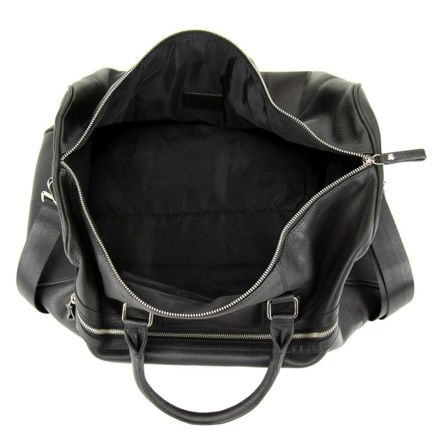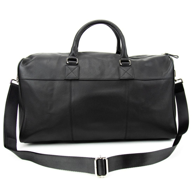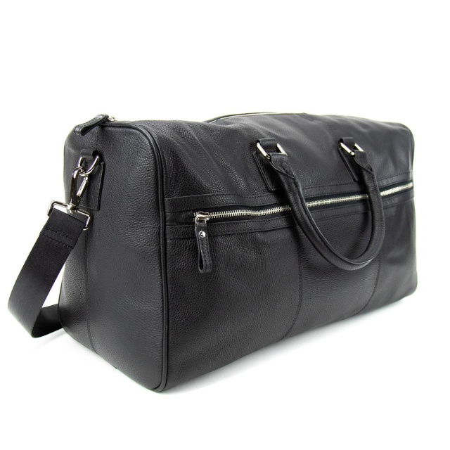 Містка дорожня сумка чорного кольору із натуральної шкіри.