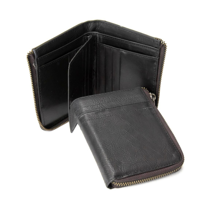 Портмонее закривається на блискавку, має одне відділення грошей.