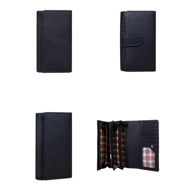 Всередині є кишеня на блискавці. Одне відділення призначене для грошей, інше має безліч слотів для банківських карт.