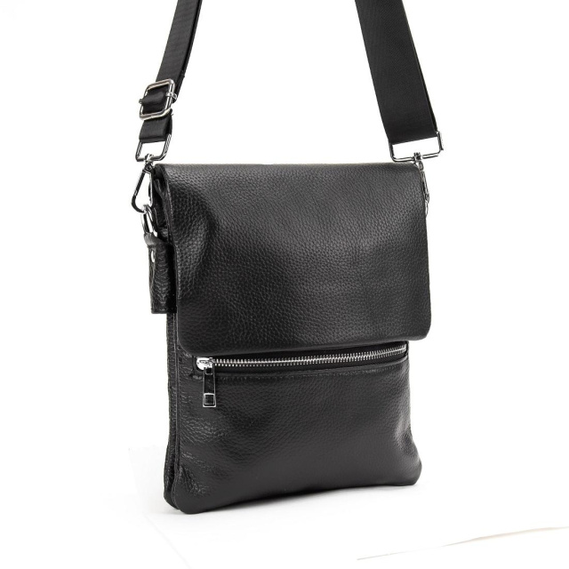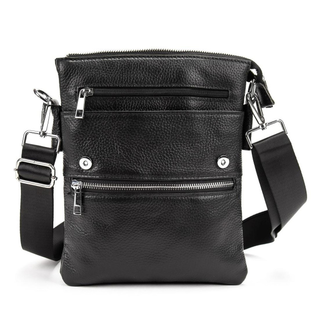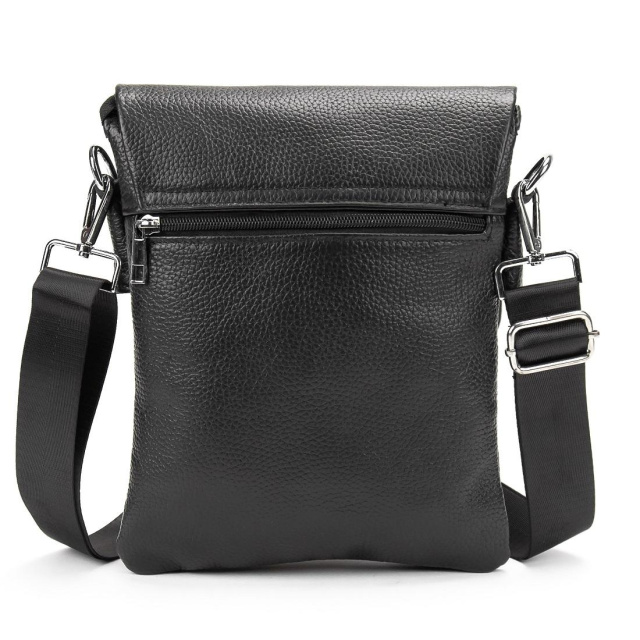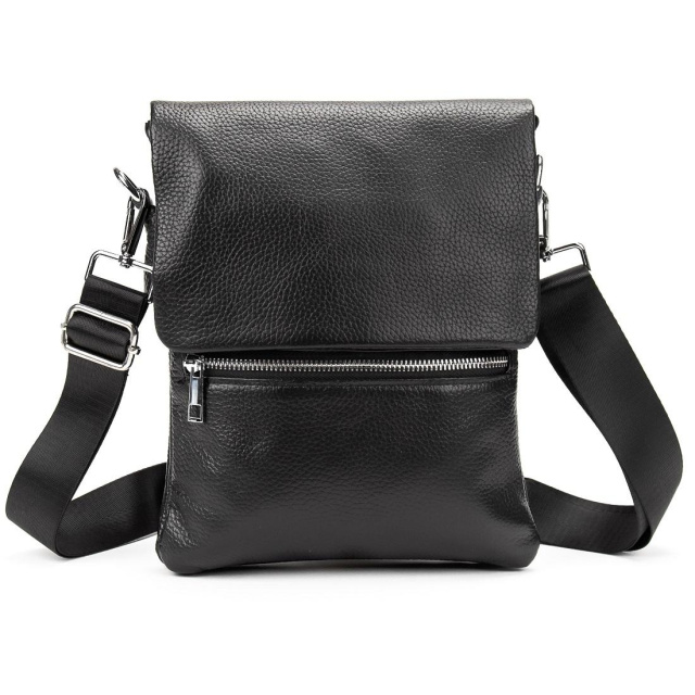 Сумка через плече Tiding Bag M56-2056A із натуральної шкіри у чорному кольорі, зернистої фактури.