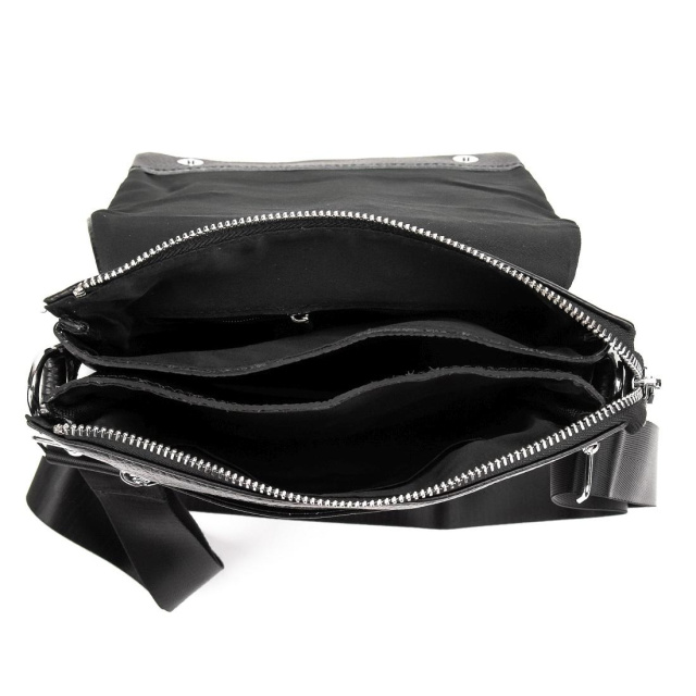 У сумці є три відділення зі шкіряними перегородками між ними, і загальним закриттям на блискавку, і відкидний клапан із магнітними кнопками.