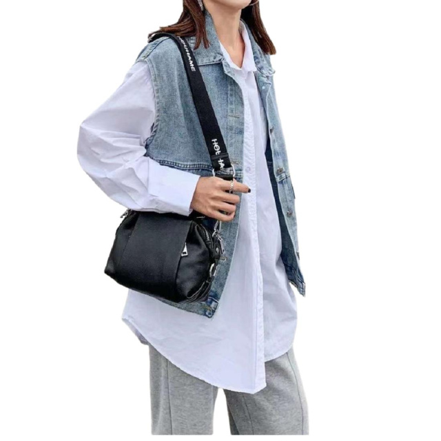 Жіноче шкіряне чорне кросбоді UnaBorsetta NB2-8686A