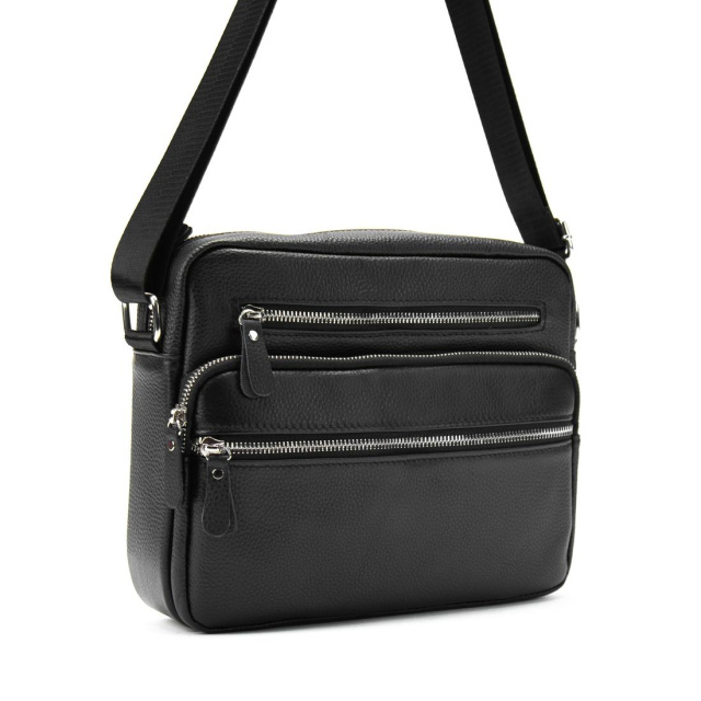 Сумка через плече Tiding Bag M56-9988A з натуральної шкіри в чорному кольорі, зернистої фактури.