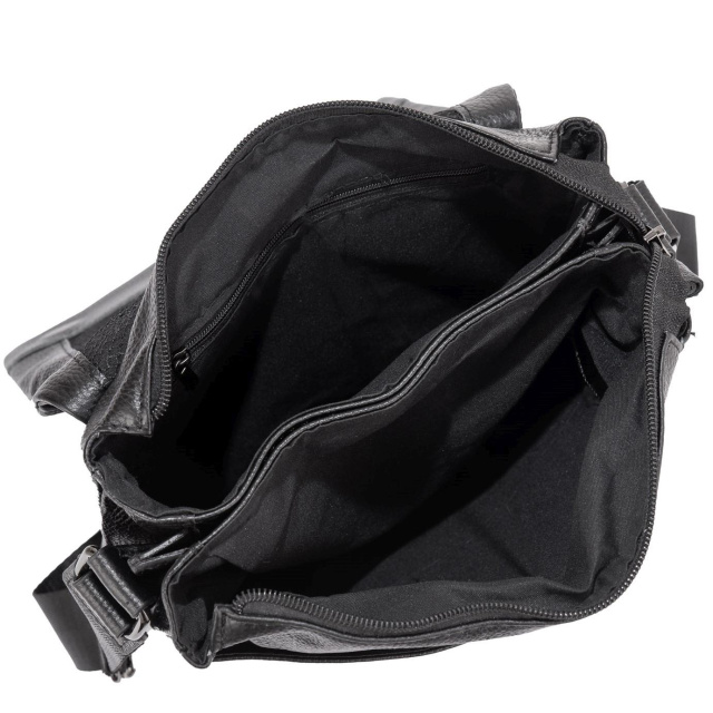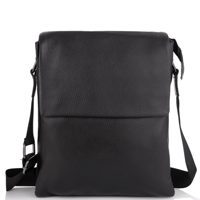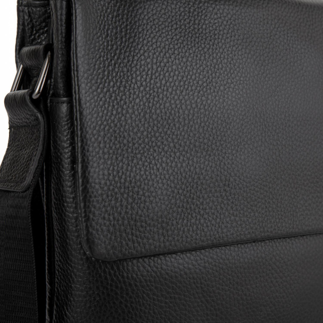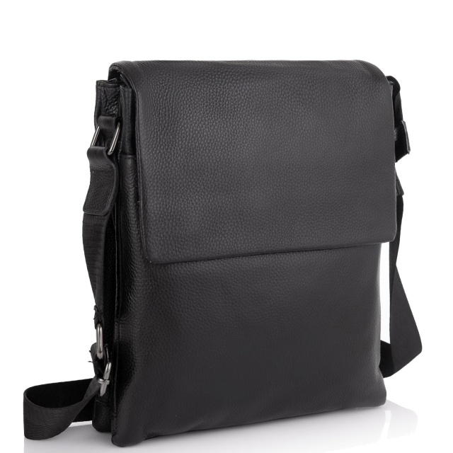 Чоловіча сумка 7875A виготовлена із натуральної шкіри чорного кольору. Структура шкіри матова, зерниста. Розміри становлять 22,5 x 25 x 4 см.