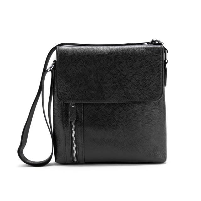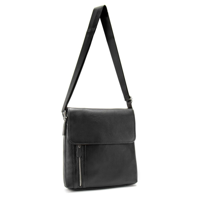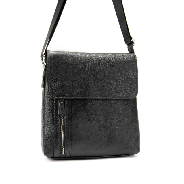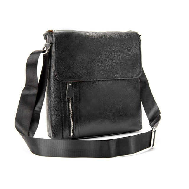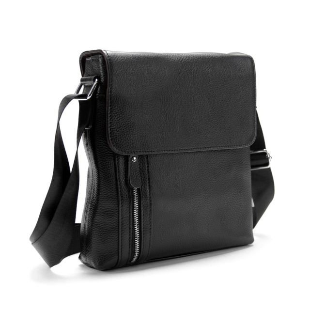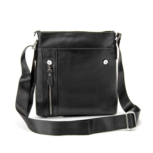 Чоловіча шкіряна сумка Tiding Bag M56-17195A виготовлена з натуральної шкіри чорного кольору та має зернисту структуру.
