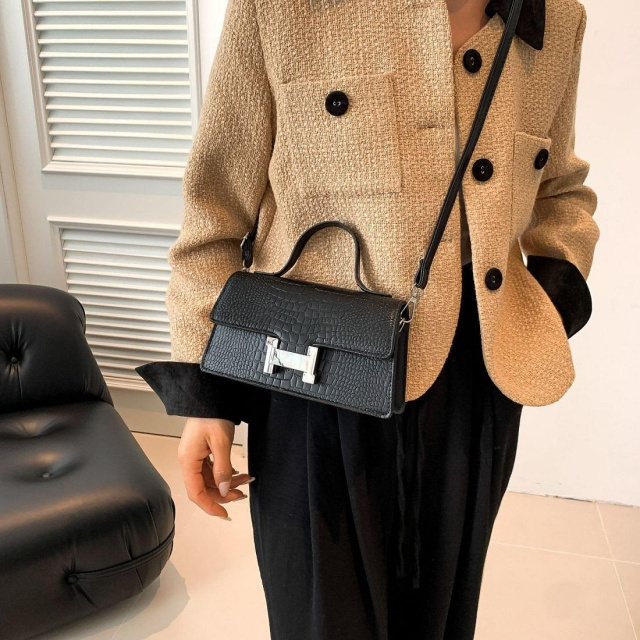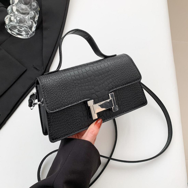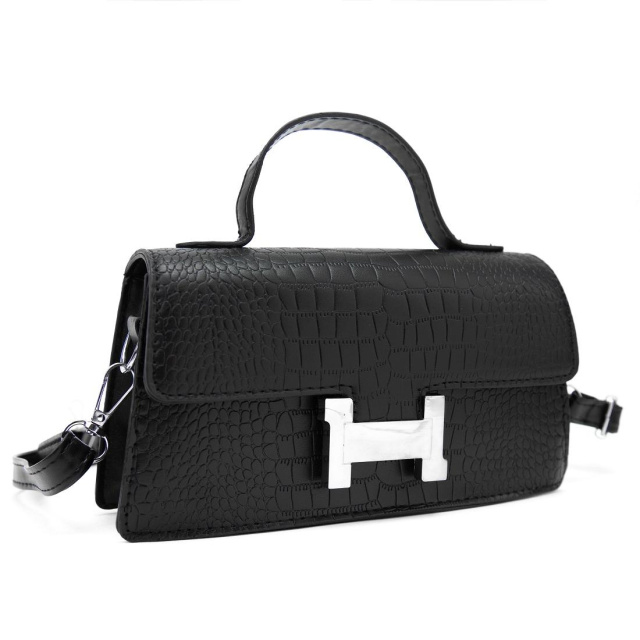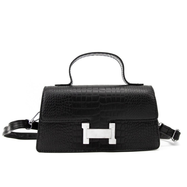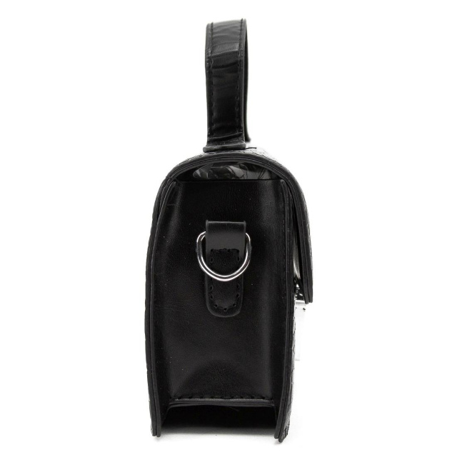 Жіноча сумка каркасна кросбоді через плече з екошкіри з клапаном чорна