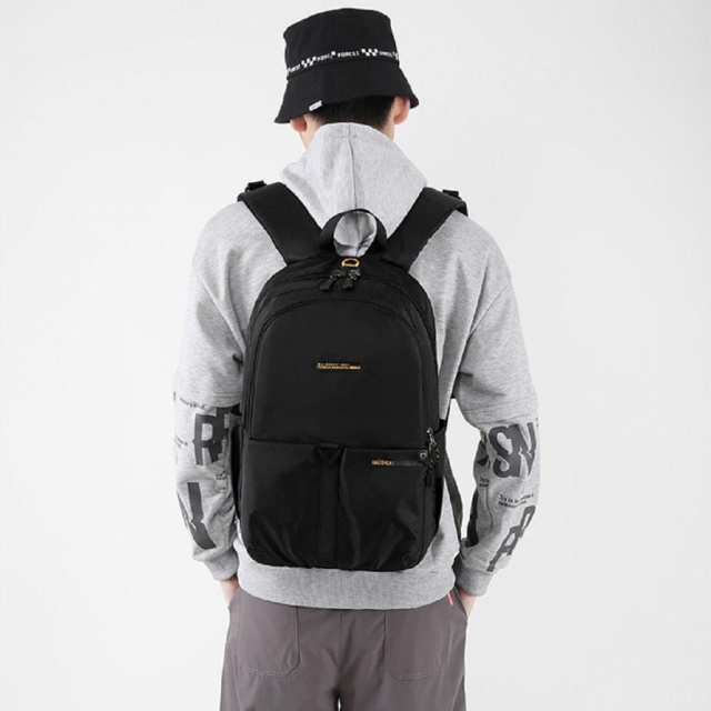 Рюкзак зроблений з міцної чорної тканини, ідеально підходить для подорожей і міста.