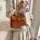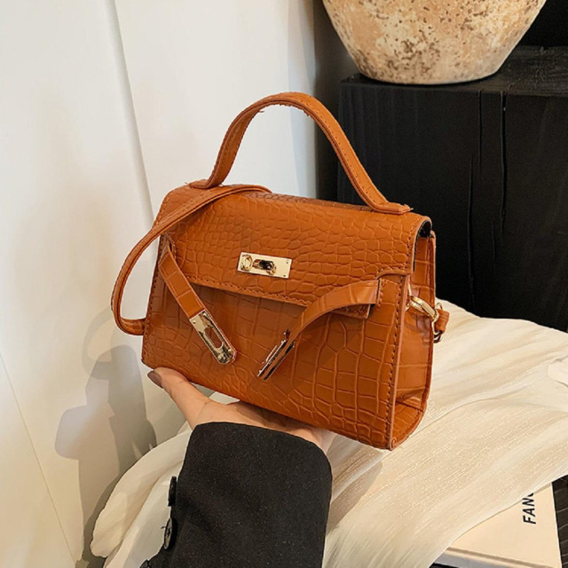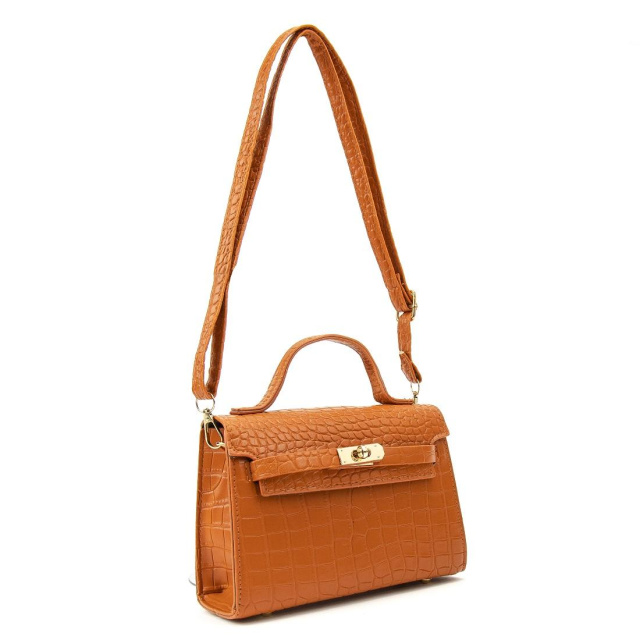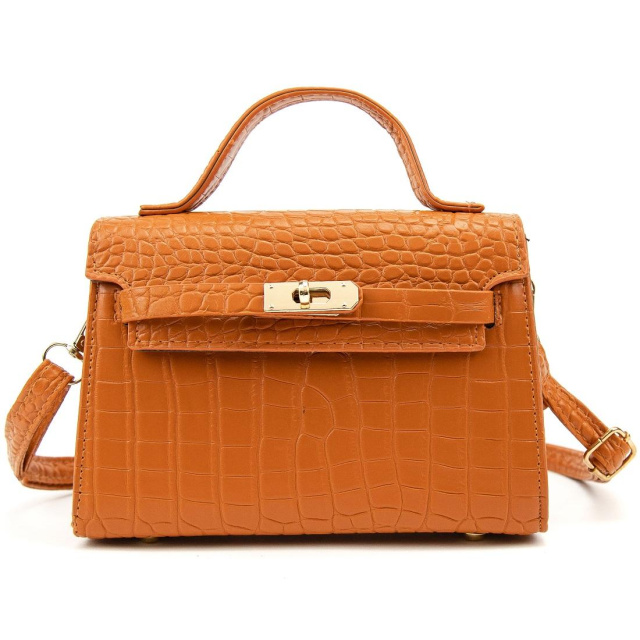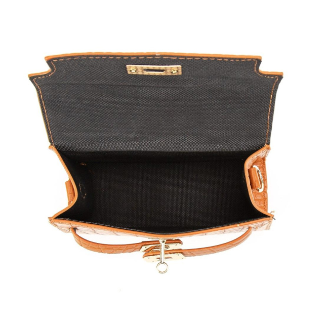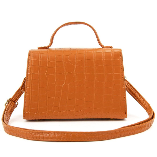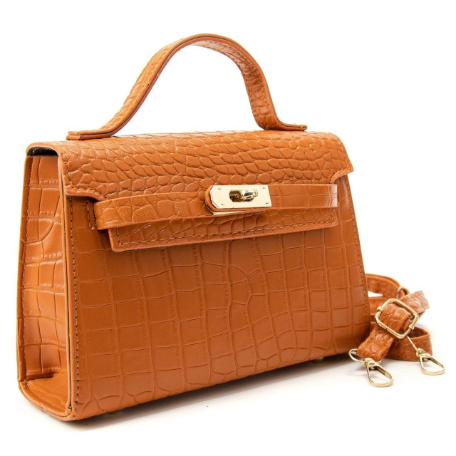 Жіноча сумка каркасна кросбоді з тисненням через плече з екошкіри з клапаном коричнева