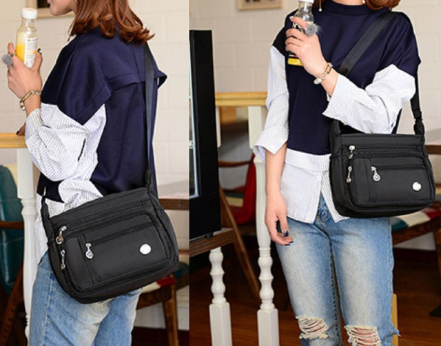 Сумка жіноча Confident WT-9802A пошита з міцної чорної тканини з вологовідштовхувальними властивостями.