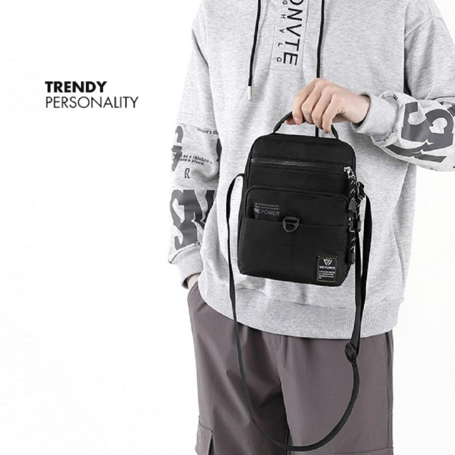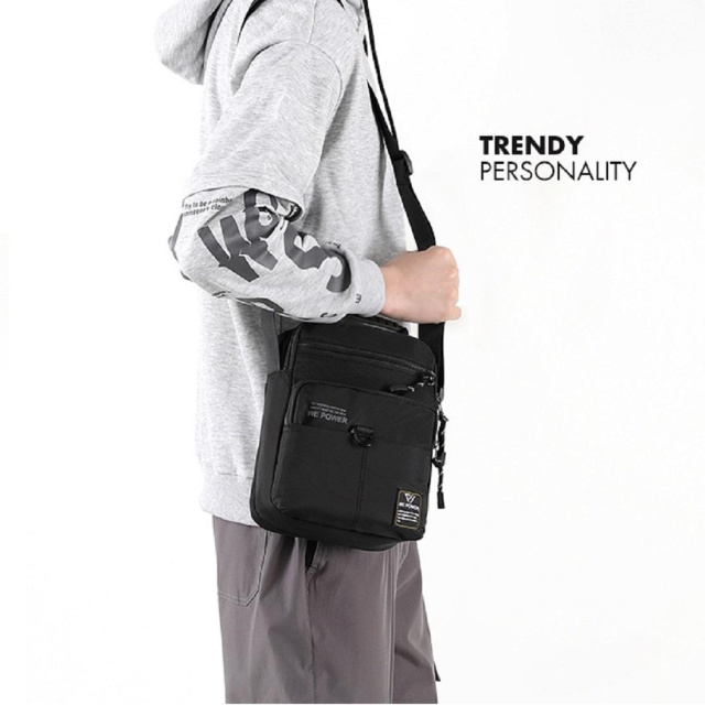 Чоловіча сумка через плече Confident AT08-5801A з міцного текстилю в чорному кольорі.