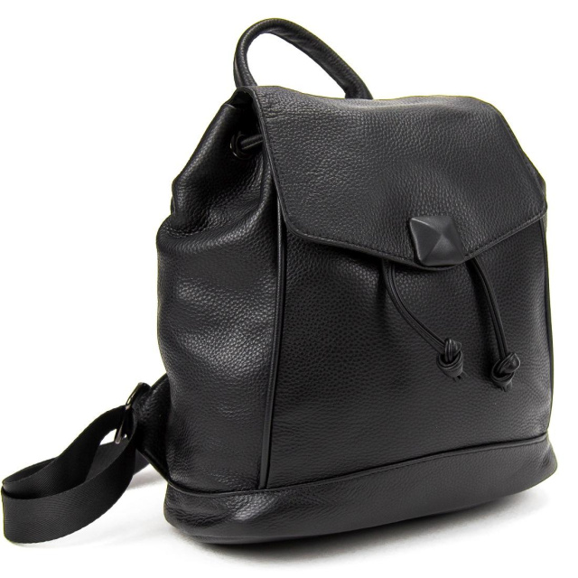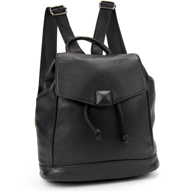 Рюкзак Olivia Leather A25F-FL-89195-1A пошитий із телячої шкіри, зернистої фактури, в чорному кольорі.
