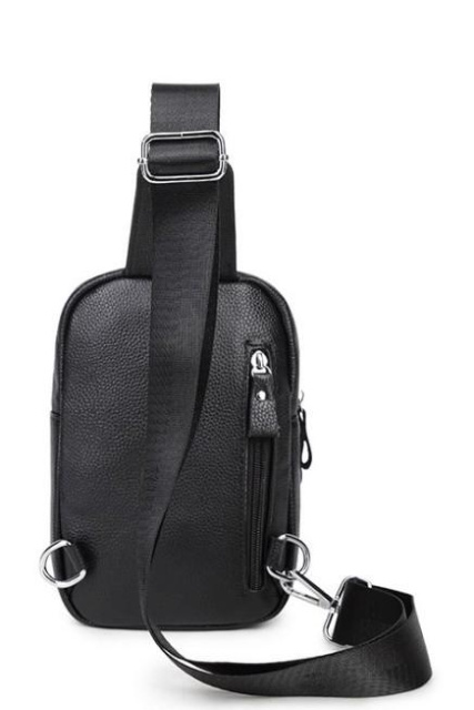 Стильний шкіряний чоловічий слінг 71922A виготовлений з натуральної шкіри чорного кольору має зернисту текстуру.