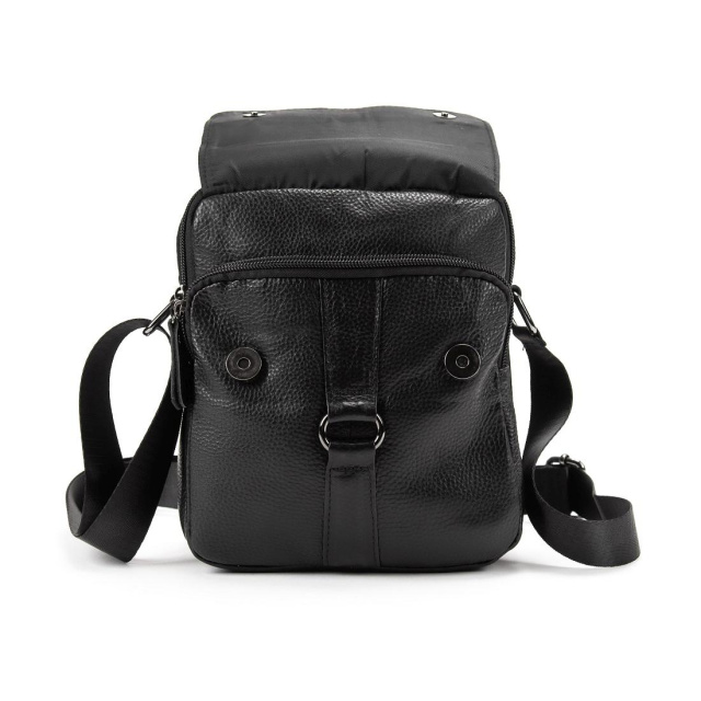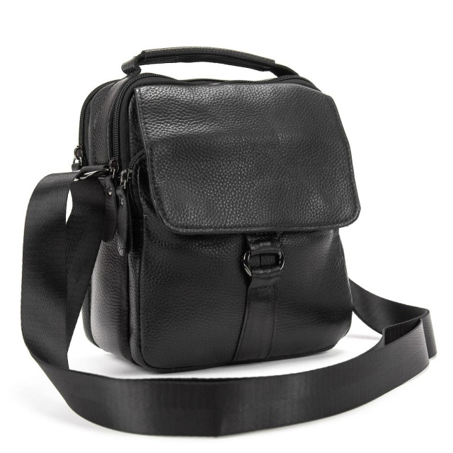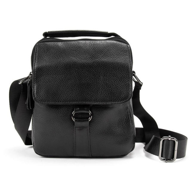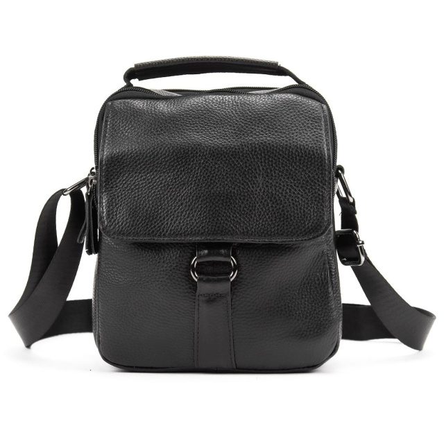 Сумка через плече Tiding Bag M56-2050A із натуральної шкіри у чорному кольорі, зернистої фактури.