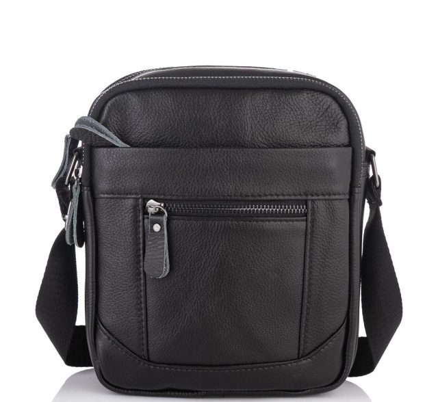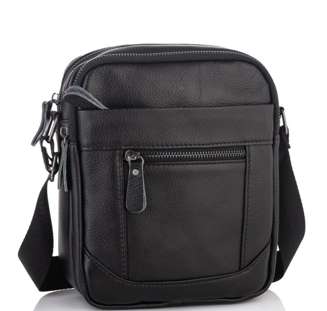 Чоловічий месенджер Tiding Bag A25-223A з натуральної зернистої шкіри чорного кольору. Розміри становлять 18 х 21 х 7 см.
