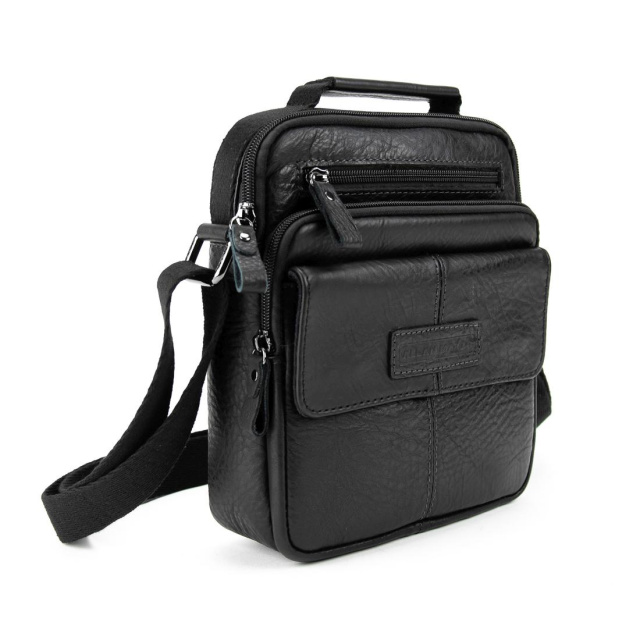 Сумка через плече Ruff Ryder RR-9133A із натуральної шкіри у чорному кольорі, шкіра зернистої фактури.