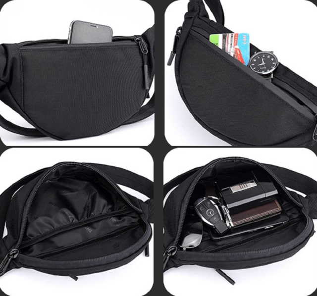 Сумка на пояс Confident AT08-828A пошита з міцного текстилю, з вологостійким просоченням, в чорному кольорі.