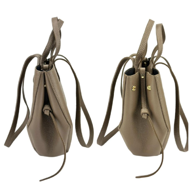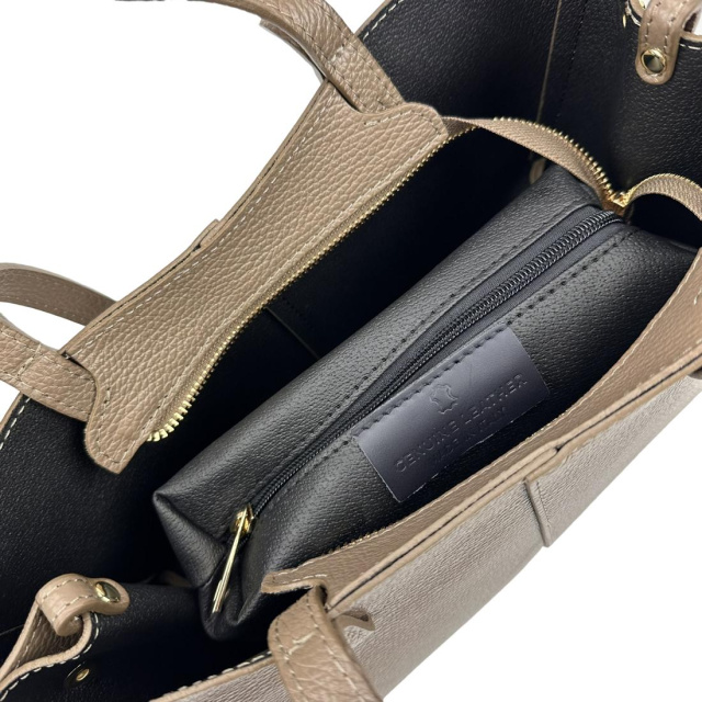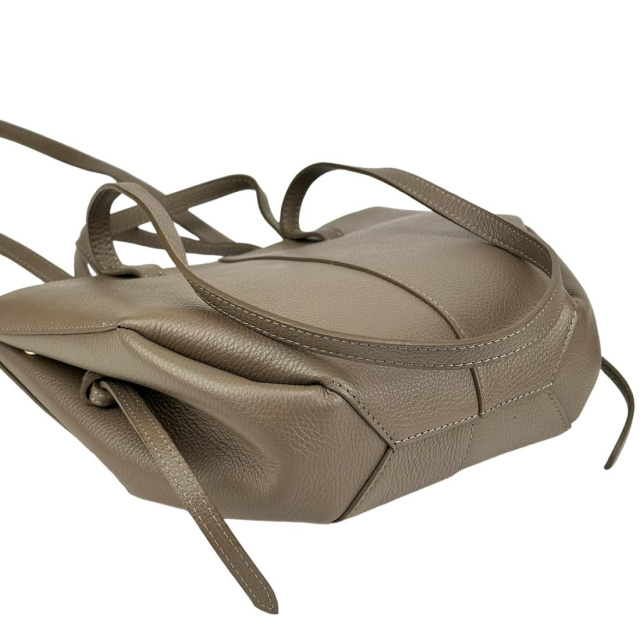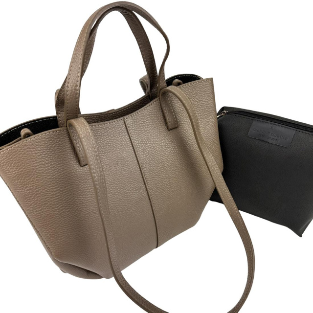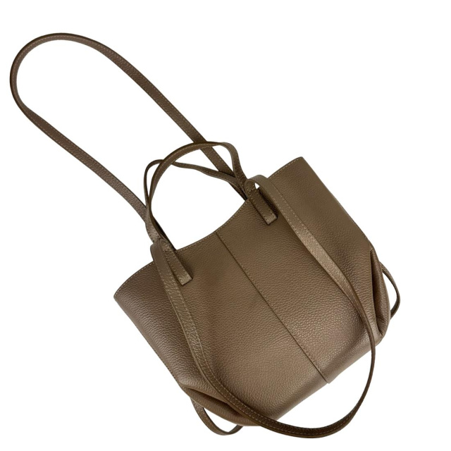 В сумці шкіряні короткі ручка й довгі, для зручного носіння на плечі.