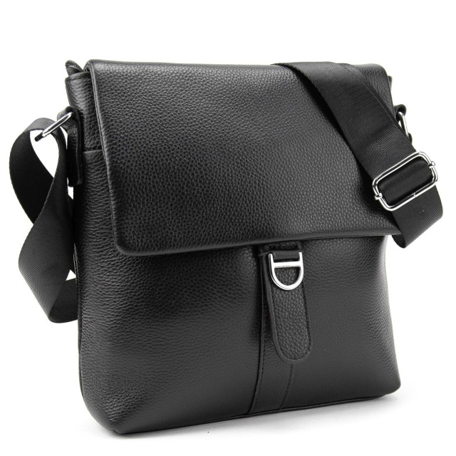 Мессенджер чорний шкіряний TIDING BAG A25-8805A виготовлен з натуральної шкіри чорного кольору.