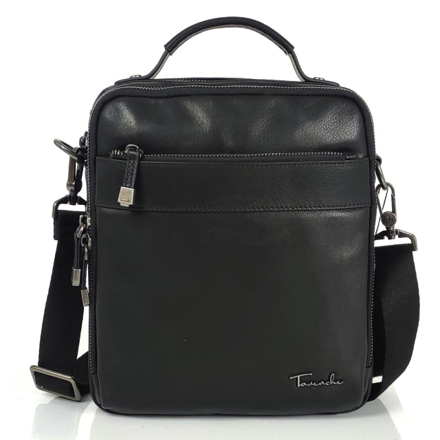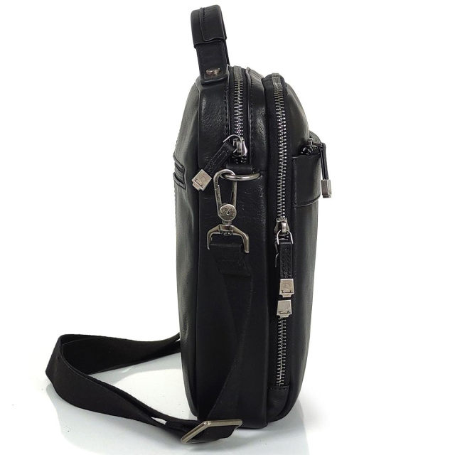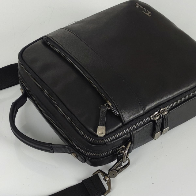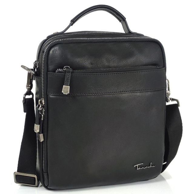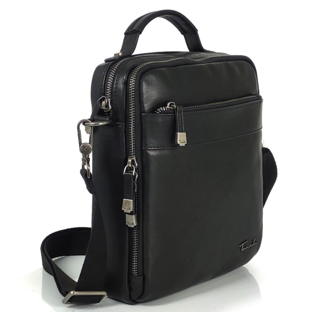 Чоловічий месенджер через плече Tavinchi TV-S-SM8-S010A виконаний із натуральної гладкої шкіри чорного кольору. Розміри становлять 22 х 25 х 7 см. Особливості: має два відділення на блискавці.