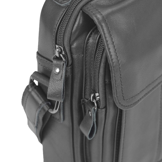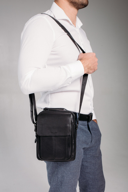 Чоловічий месенджер Tiding Bag N2-8017A виготовлений з натуральної шкіри чорного кольору. Структура шкіри зерниста. Розміри становлять 18 x 22 x 5 см.