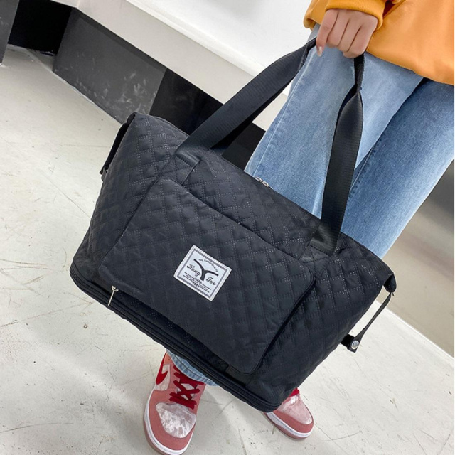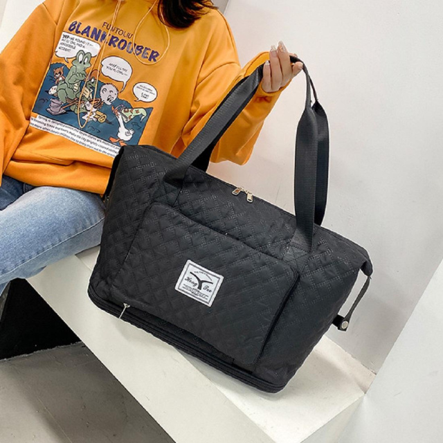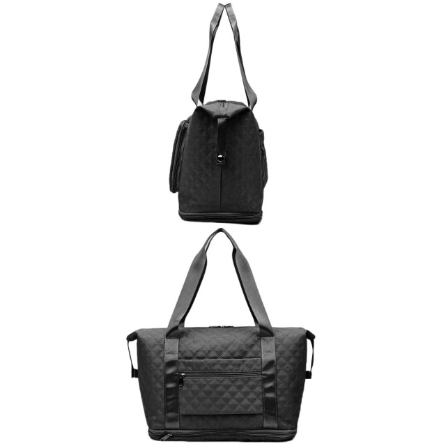 Жіноча сумка Confident TB1-T-229A пошита з міцної чорної стьобаної тканини, з вологовідштовхуючими властивостями.