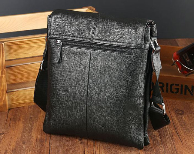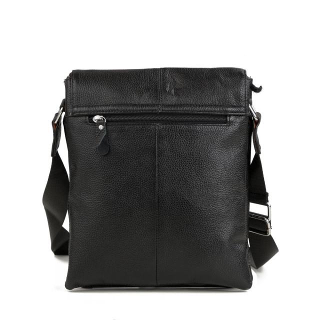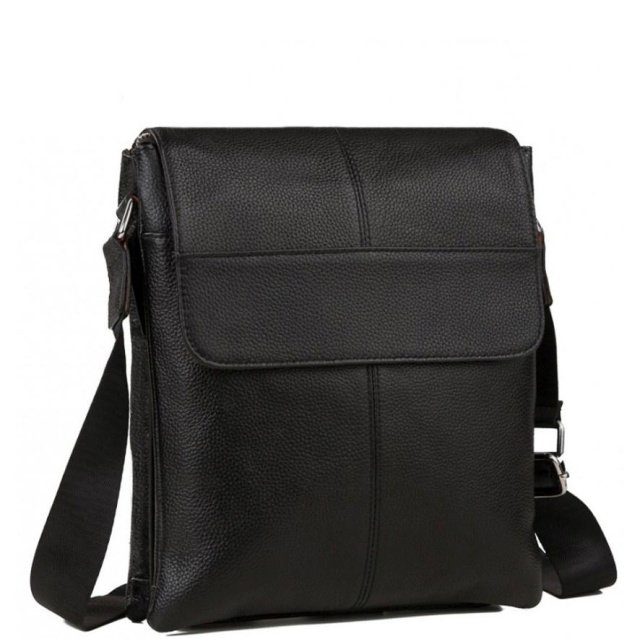 Чоловіча шкіряна сумка Tiding Bag A25-064A виготовлена з натуральної шкіри чорного кольору і має зернисту структуру.
