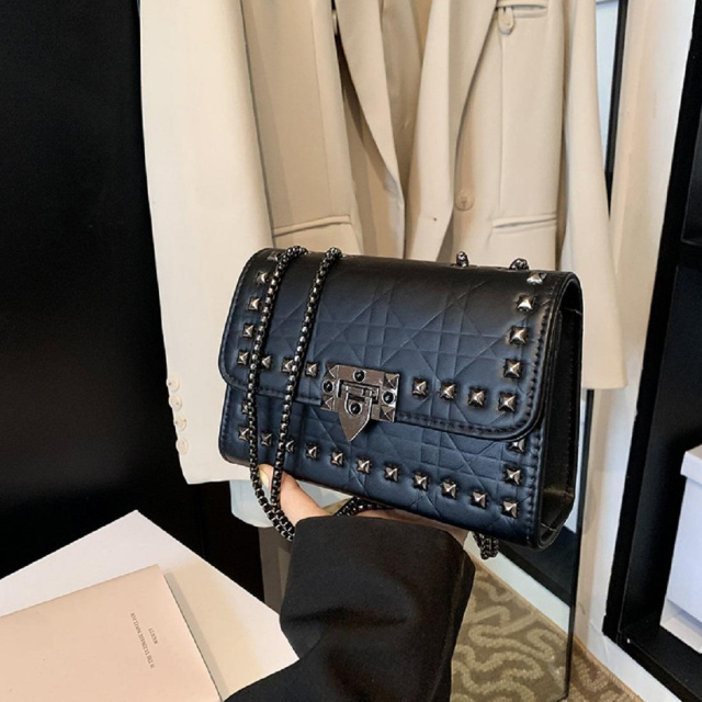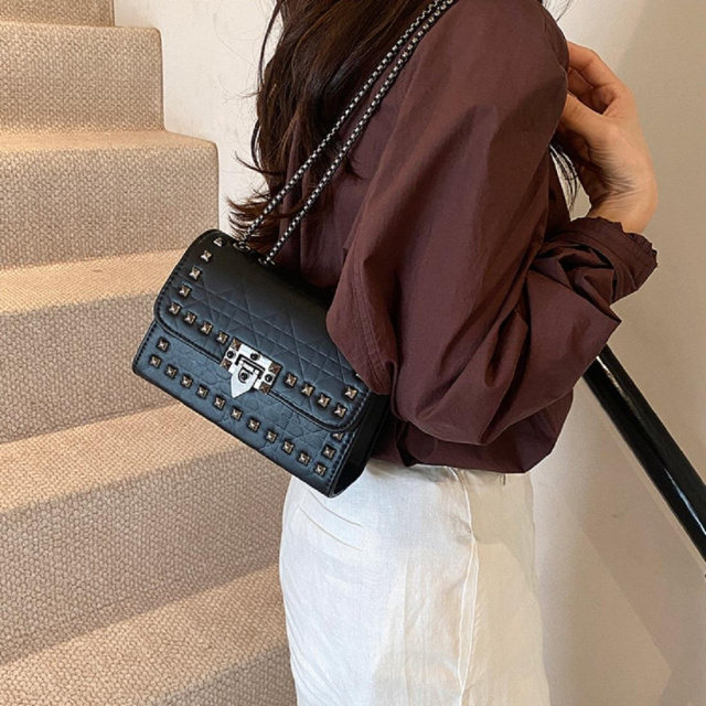 Жіноча сумка кросбоді каркасна з екошкіри на ланцюжку з заклепками