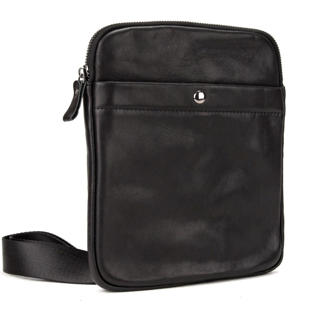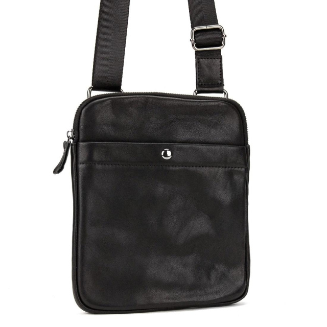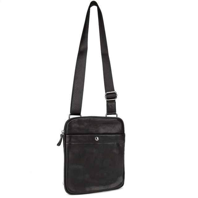 Сумка через плече Tiding Bag S-N2-123A із натуральної шкіри у чорному кольорі, гладкої фактури.