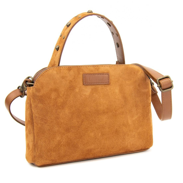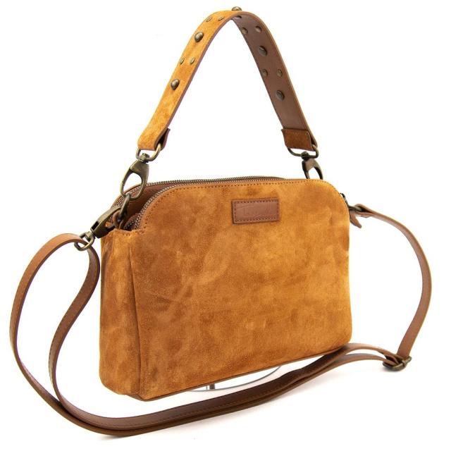 Жіноче кросбоді з ручкою на три відділи з натуральної замші