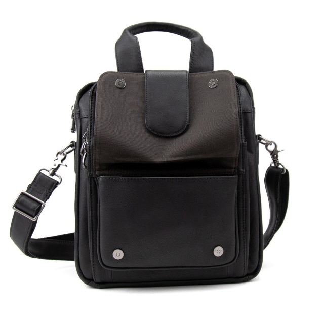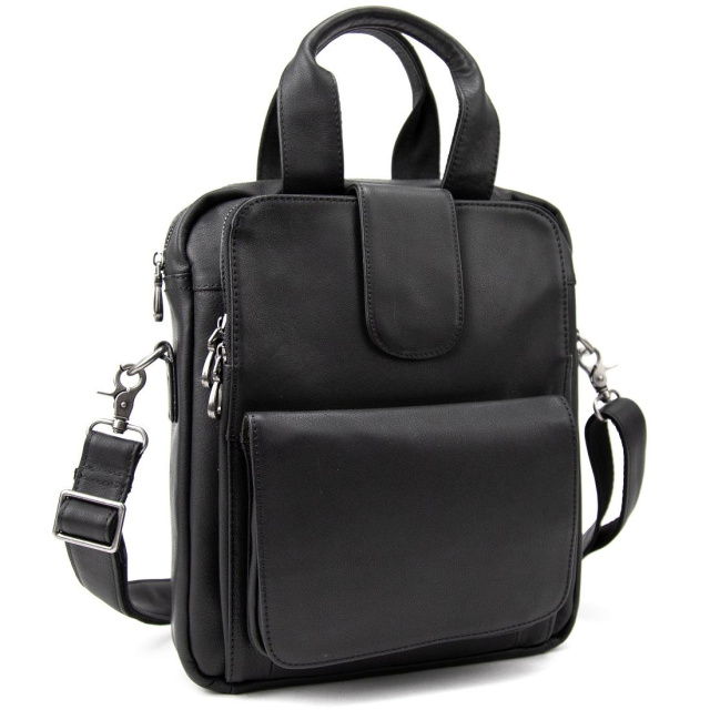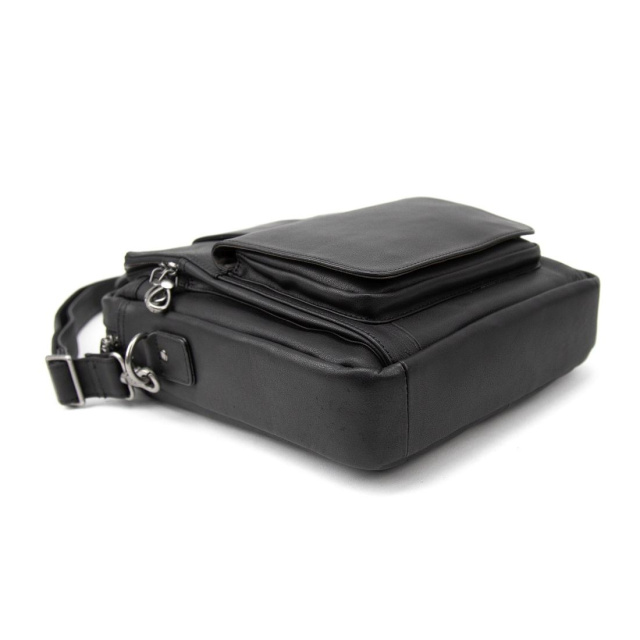 Чоловіча сумка на плече від Tiding Bag виготовлена з натуральної шкіри. Наплічна шлейки зроблена зі шкіри, має текстильну підкладку, яка зберігає форму і первинний зовнішній вигляд. Сумка-месенджер має одне основне відділення на блискавці. З лицьового боку є кишеня на блискавці і невелика кишеня яка закривається клапаном. З тильного боку кишеню на блискавці. Усередині сумки є кишеня на блискавці і кишеня відкритого типу.