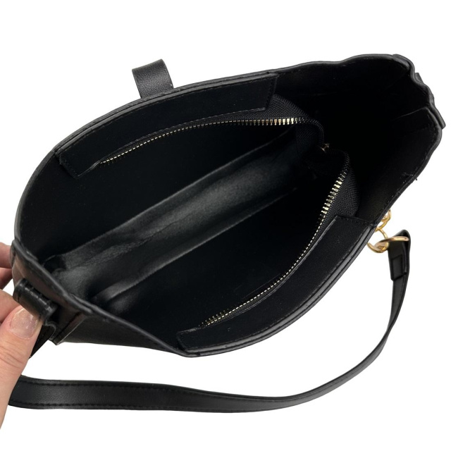 Сумка має одне основне відділення, яке закривається за допомогою клапана та блискавки.