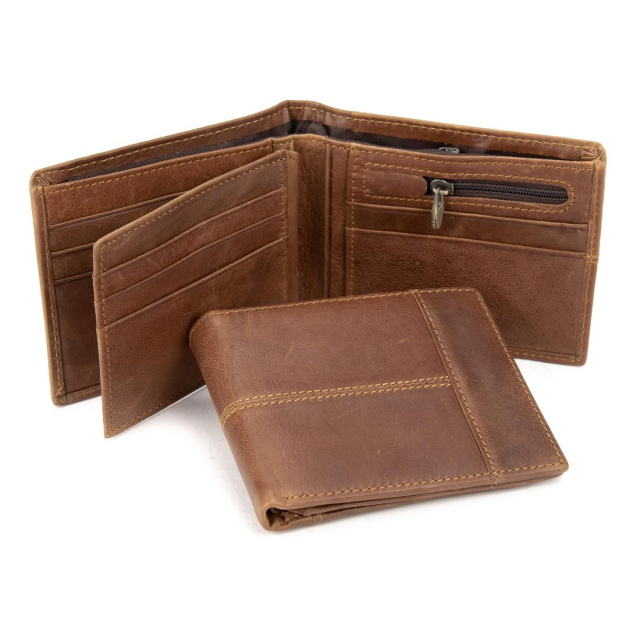Представляємо Вашій увазі дивовижне поєднання класичного виконання і вінтажного стилю - чоловічий гаманець з натуральної телячої шкіри. Практична гладка поверхня гарантує аккуратний зовнішній вигляд аксесуара навіть при тривалому використанні. Додаткова кишеня з тильного боку, основний місткий відділ для купюр, 5 слотів для кредитних карт або пластикових документів, слот для фото - всі ці відсіки допоможуть розмістити все найнеобхідніше. Портмоне подвійного складання відрізняється місткістю, але при цьому компактними розмірами, воно легко поміститься як в кишені, так і в діловому портфелі. Декоративна строчка щільною ниткою додає моделі оригінальності.