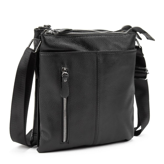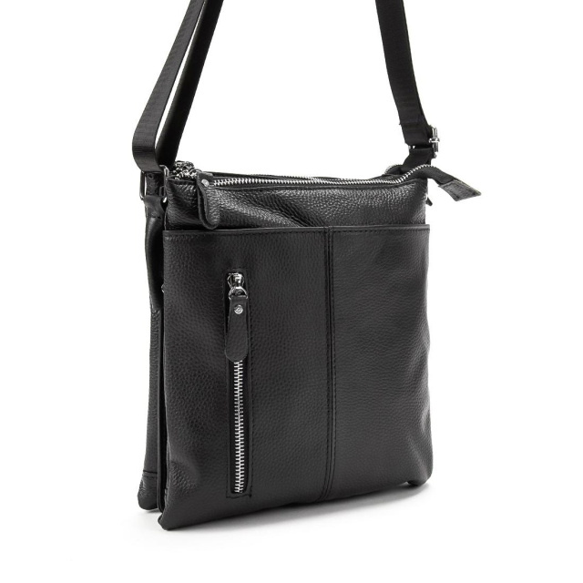 Сумка через плече Tiding Bag M56-3639A із натуральної шкіри у чорному кольорі, зернистої фактури.