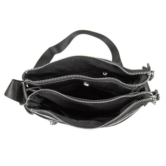 У сумці є три відділення: два на блискавках та третє між ними на магнітній кнопці.