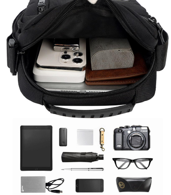 Один основний відділ на блискавці. Три додаткові, невеликі кишені на лицьовій зовнішній частині сумки. І кишеня на блискавці із тильного боку сумки.