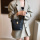 Наплічний довгий ремінець регулюється по довжині, відстібається за допомогою карабінів.