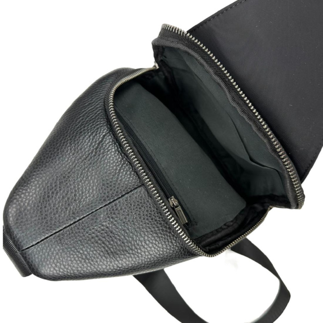 Чоловічий стінг через плече Tavinchi TV-SM8-681A-1 виконаний із натуральної шкіри чорного кольору.