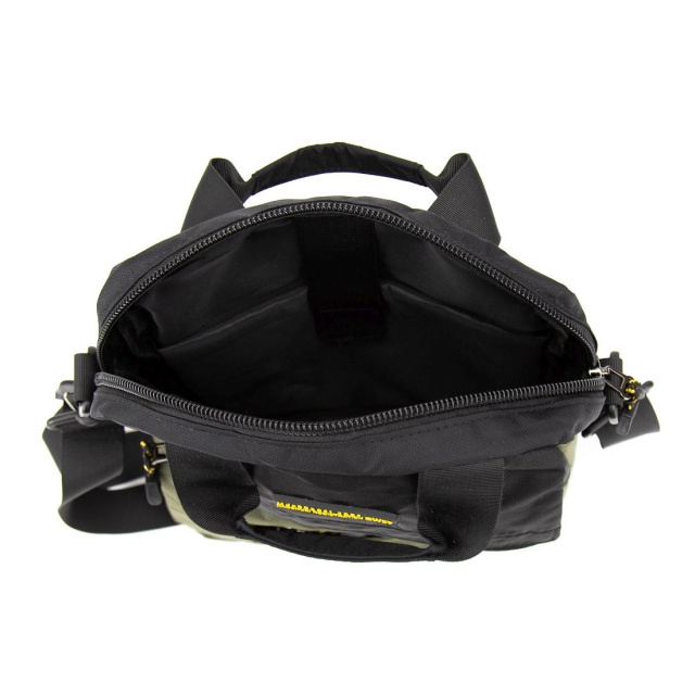 Наплічний текстильний ремінь знімний регулюється по довжині. Також у сумці є короткі ручки із ущільненням для комфортного перенесення виробу.