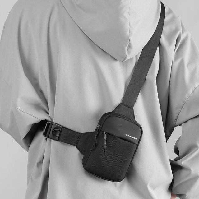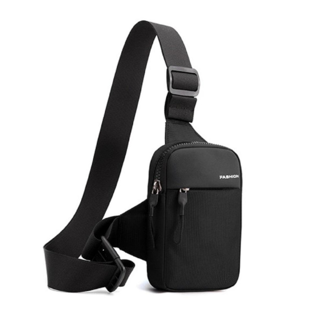 Текстильна чоловіча сумка через плече ATN02-2042A пошита з міцної чорної тканини.