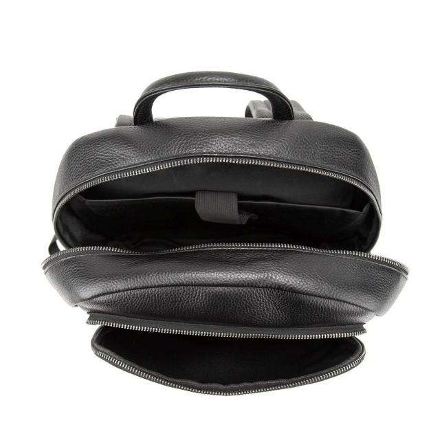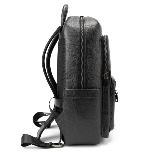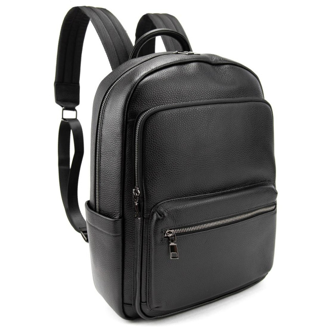Чоловічий шкіряний рюкзак чорний 7131419A виготовлений із натуральної шкіри чорного кольору, що має зернисту матову текстуру.