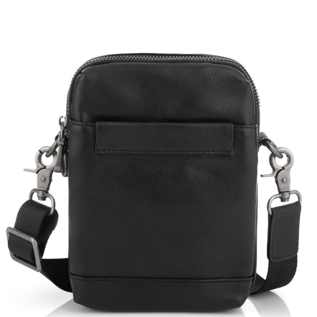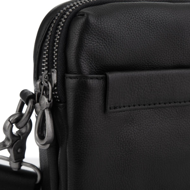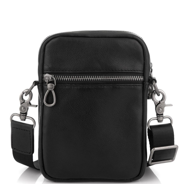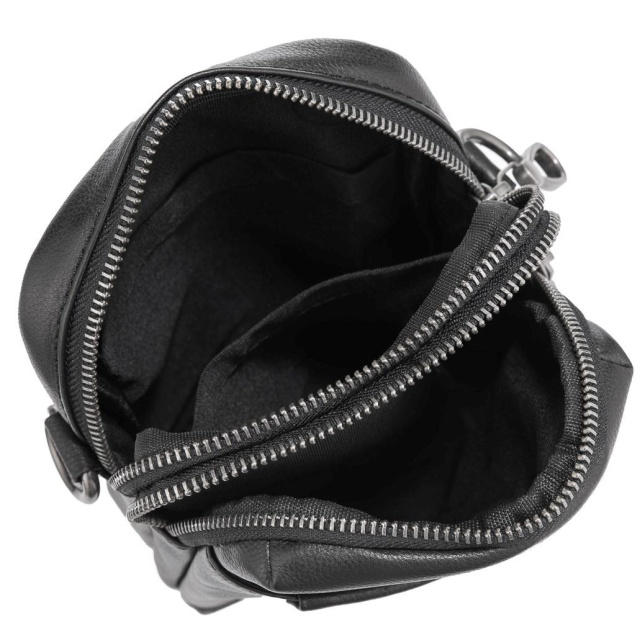Компактна шкіряна сумка для дрібниць. Для носіння є знімний текстильний ремінь. Фурнітура темно-срібного кольору, надійна. Сумка має два основних відділення, одне трохи більше в ньому є дві додаткові кишені відкритого типу. З лицьового боку кишеня на потаємному магніті відкритого типу, з тильного боку кишеня на блискавці.