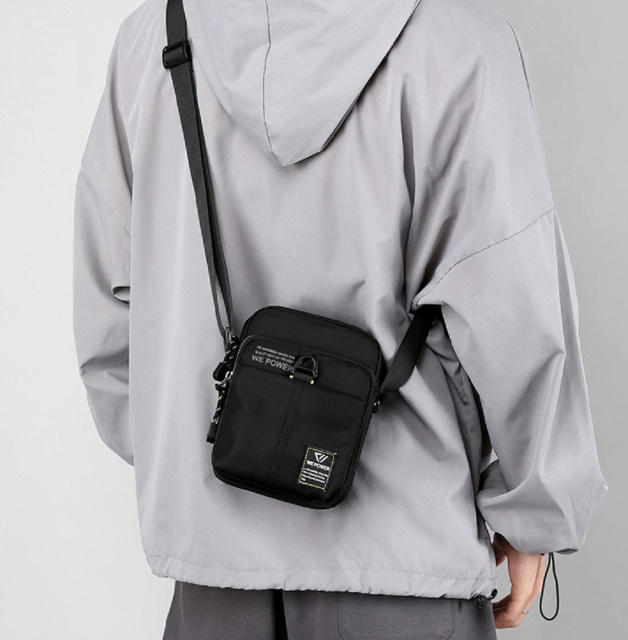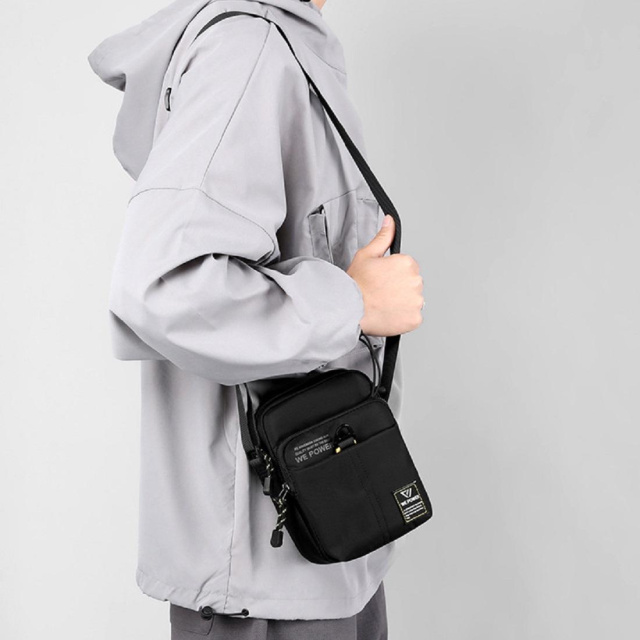Чоловіча сумка через плече Confident AT08-5810A з міцного текстилю в чорному кольорі.