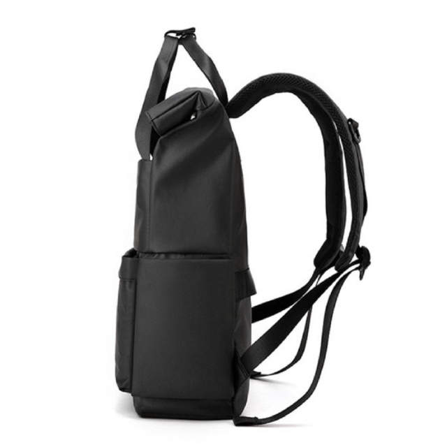 Рюкзак зроблений із міцної чорної тканини, ідеально підходить для подорожей та міста.